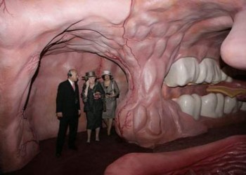 Intrarea se face printr-o rană la nivelul gambei, urmând a parcurge mai multe segmente corporale: uterul (unde adulții pot viziona procesul de fertilizare a ovulului de către spermatozoid), tractul intestinal și stomacul (unde vizitatorii pot privi modul cum este digerată brânza), rinichii, inima, plămânii, cavitatea bucală, nasul și urechea, și în final “mansarda” muzeului – creierul.