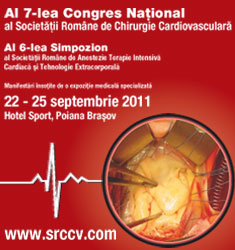 In perioada 22 - 25 septembrie 2011 in incinta Hotelului Sport, Poiana Brasov, Societatea Romana de Chirurgie Cardiovasculara (SRCCV) in colaborare cu Societatea Romana de Anestezie - Terapie Intensiva Cardiaca si Tehnologie Extracorporala (SRATICTE) organizeaza evenimentele SRCCV 2011: